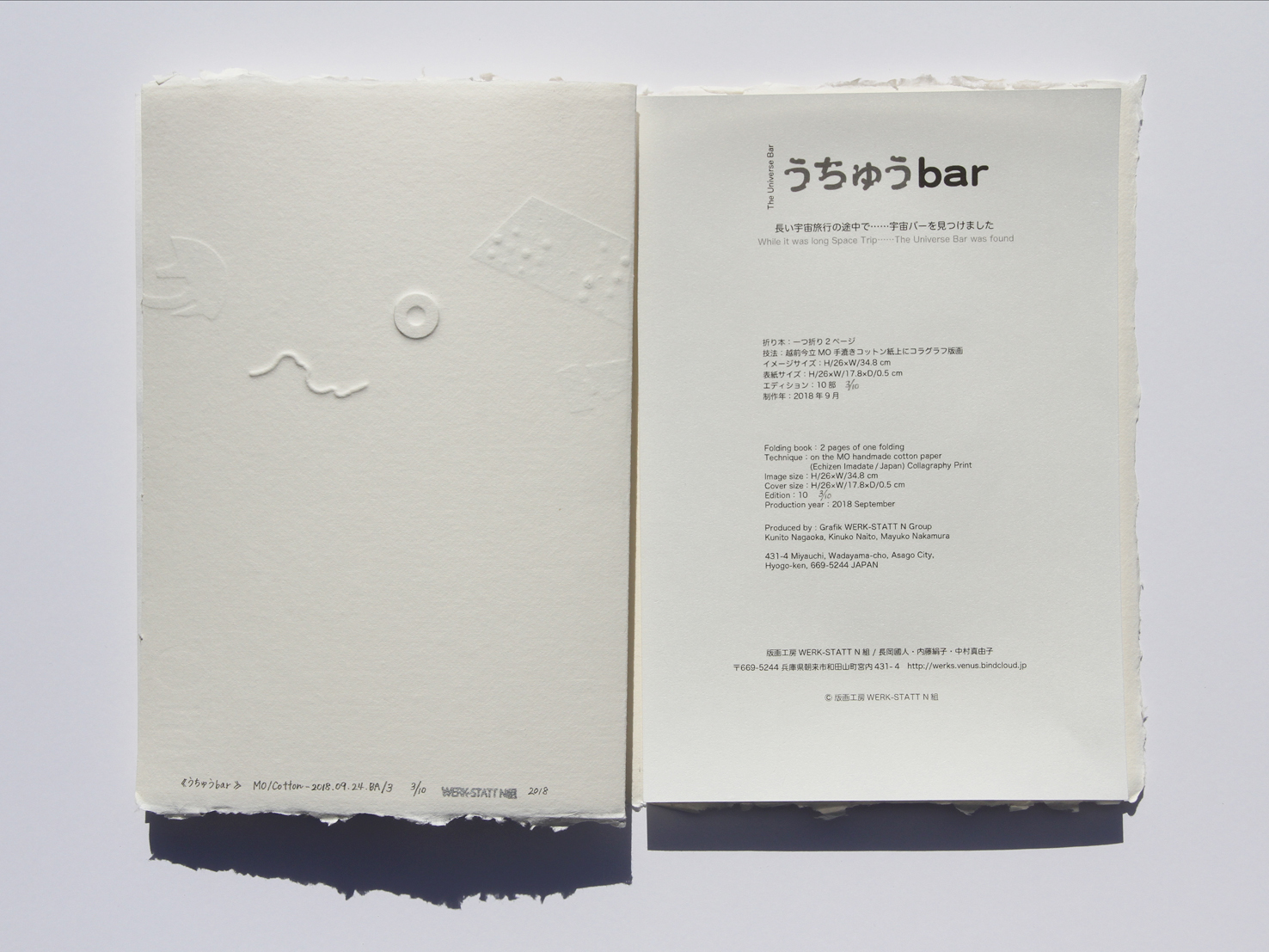 います。このオリジナル版画紙は丹後二俣和紙の協力のもと、再生紙の上に伝統的