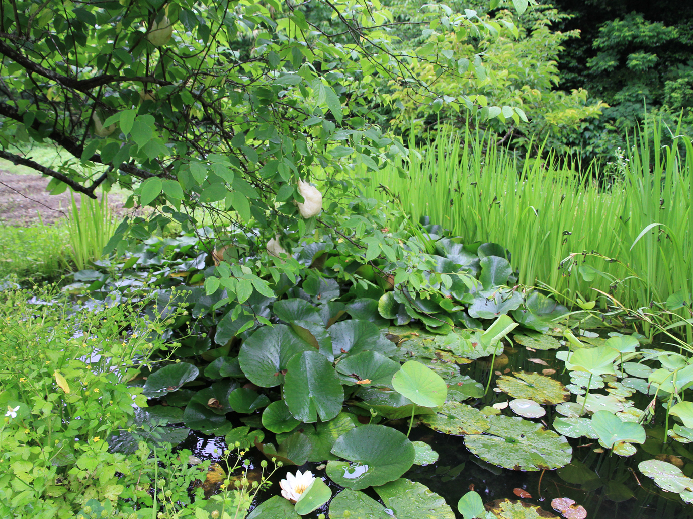 今年も梅雨の季節に入りました。この時期は畑の隅にあるビオトープの上に
