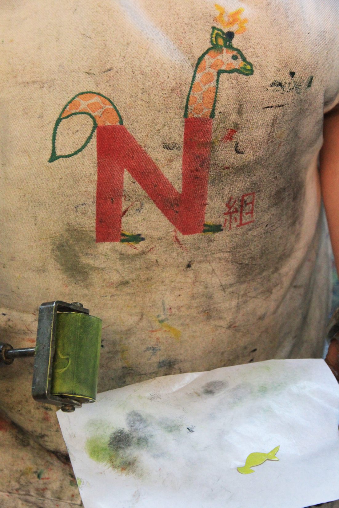 今まで版画制作で使って来た、手作りエプロンにも色んな