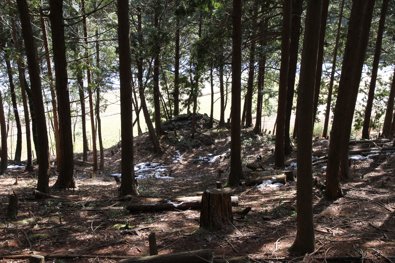 墳の西垣古墳群が集落の入り口にあります。山で木を切っていた隣のおじさん