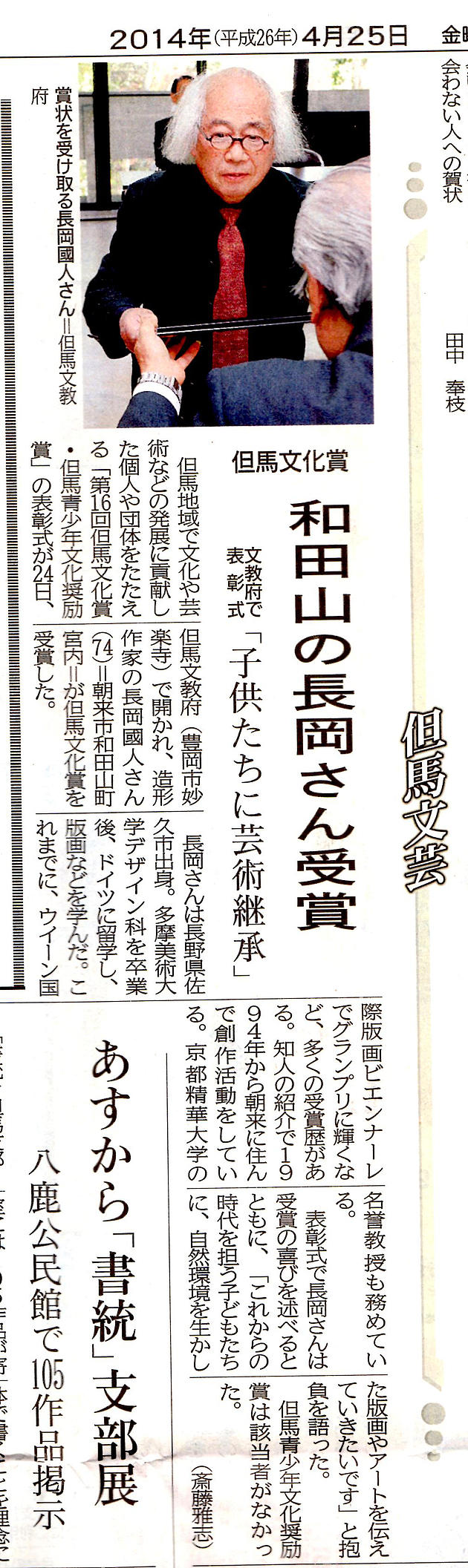 神戸新聞 但馬版 (2014.4.25) /斎藤雅志記者