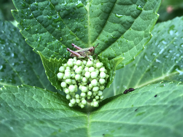 には紫陽花に小さなバッタがいました。私たちはこのような