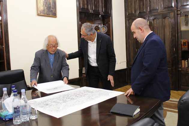 昨年のErebuniの楔形文字拓本に続き2回目の貴重な機会を得る事ができた。Gallery 25の所有者の尽力で、2日後にはShirak州知事執務室で知事直々にこの拓本を手渡す事が実現した。