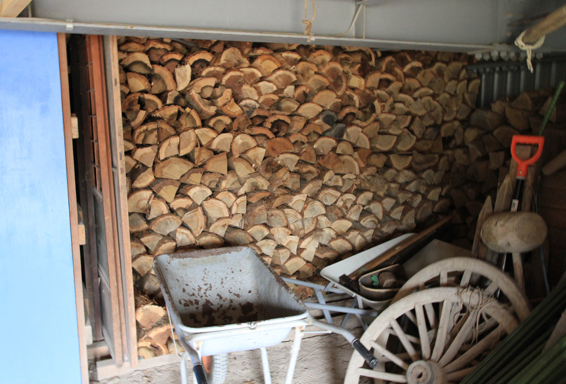 っていました。今月中に山積みの太い丸太をチェーンソーで切断し、薪割りの日々