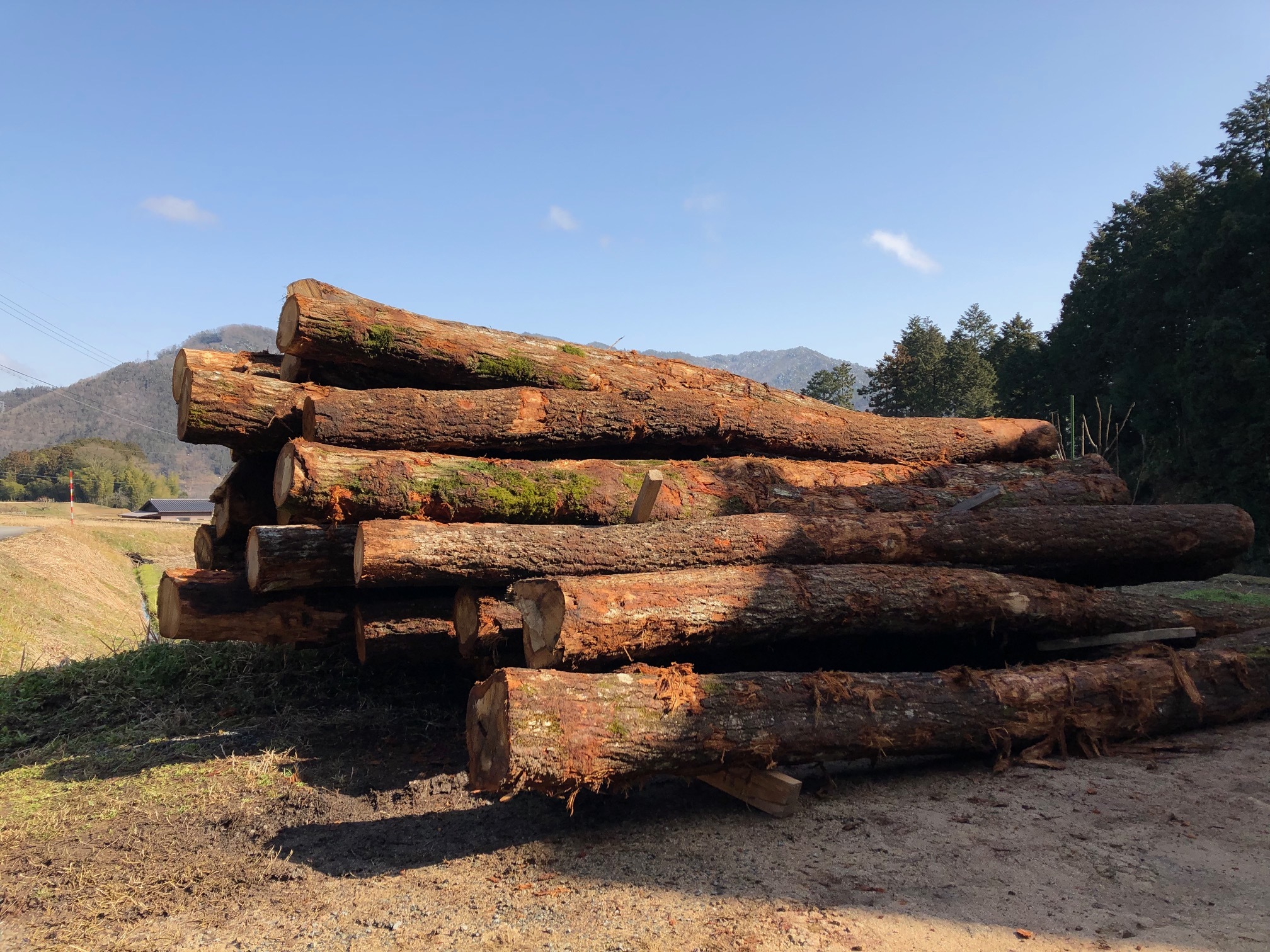 が続きます。一本200キロ以上もある重い丸太が崩れて事故が起きないよう、細心
