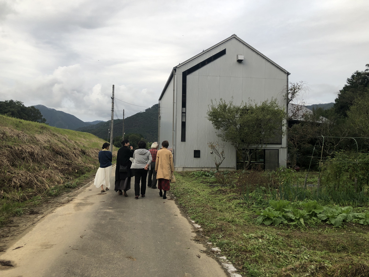 て下さっている方や親子対象のワークショップに以前参加して頂いた方などが来てくださり、和やかな会となりました。写真は工房を案内して、畑の隅にあるビオトープの見学を終えたところです。皆さんにN組工房の自然環境に共感して頂けたようです。