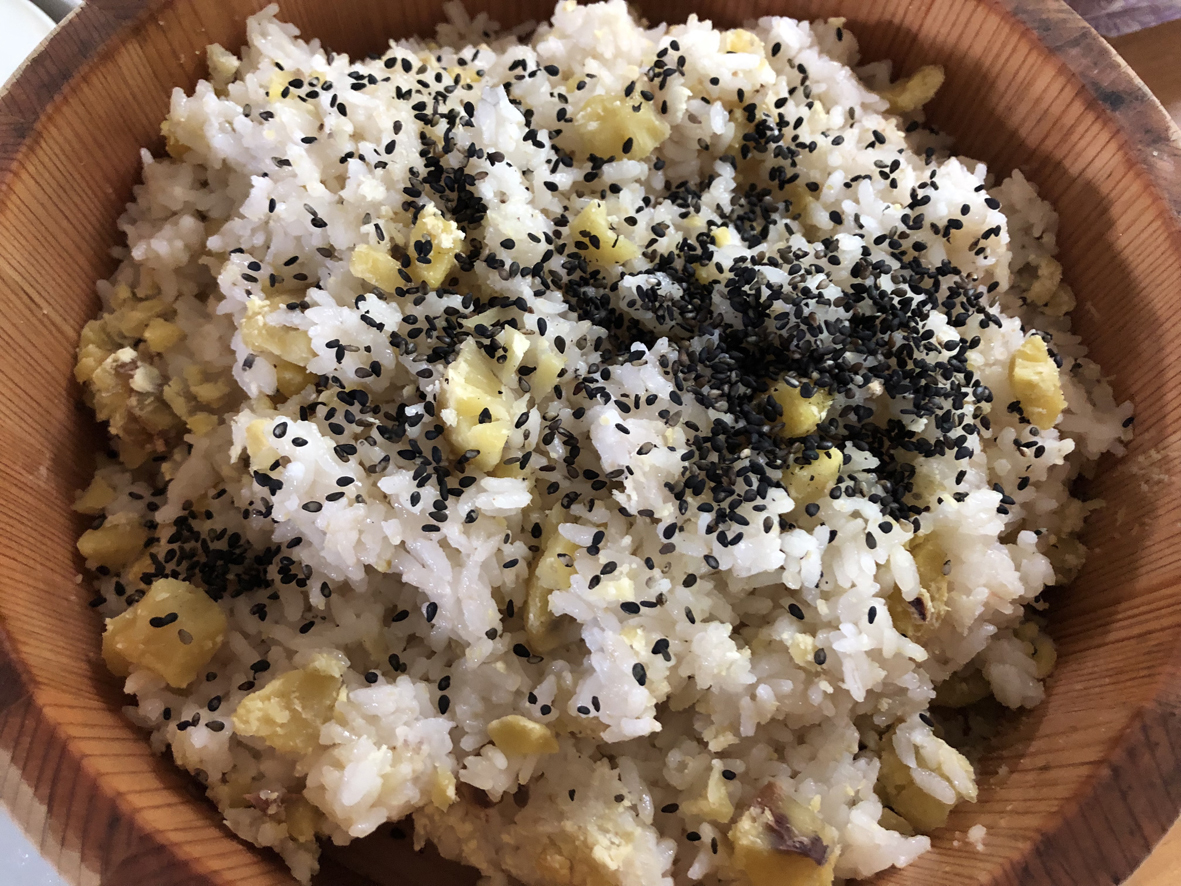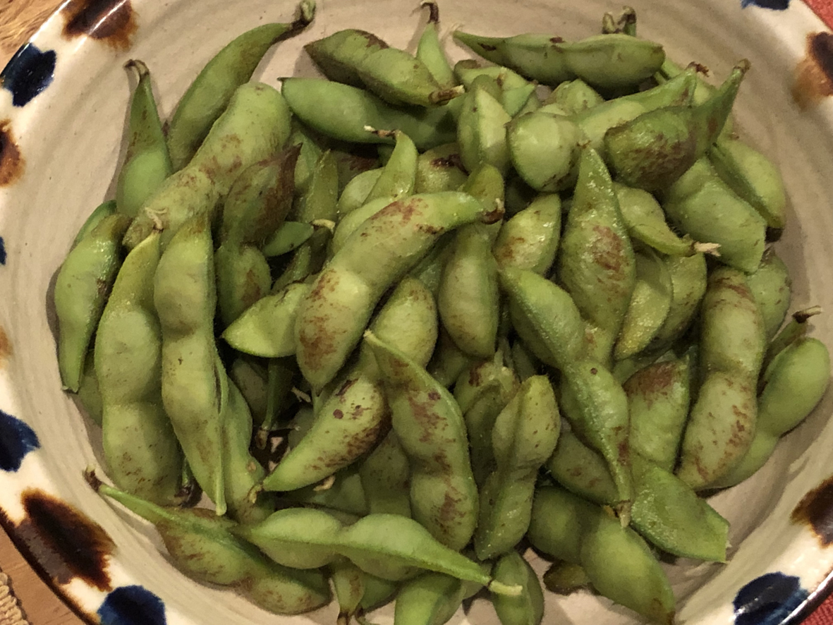 川沿いの土手で採れた大きな丹波栗の栗ご飯や美味しいお料理の差し入れもあり、秋の味覚も楽しみました。秋の味覚といえば、今の時期にしか味わえない但馬産の黒枝豆も旬です。工房周辺にも黒豆畑があります。