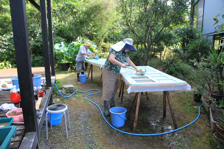台風前に7回目の紙漉き