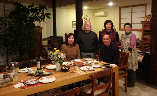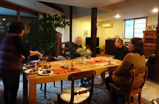 私たちの手作りの食事には畑で採れた冬野菜、落花生、クルミなども味わって頂