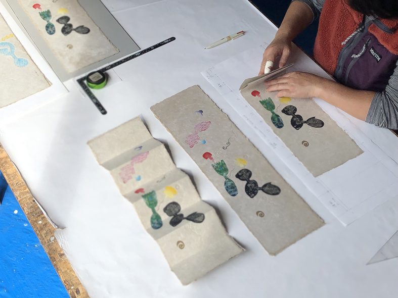 秋の制作活動をはじめました。今年の夏に漉いたN組オリジナル手漉き版画