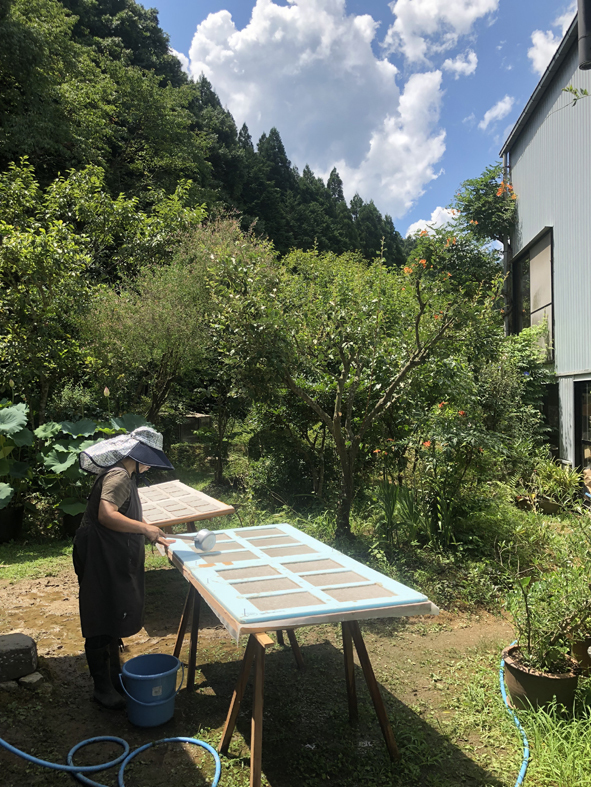 昨年とほぼ同時期の紙漉はハードな作業でした。日中は灼熱の太