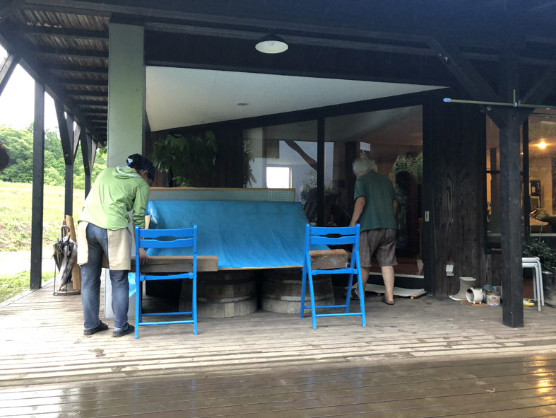 からスタートです。日中は天日乾燥の作業以外は屋内で休憩や他