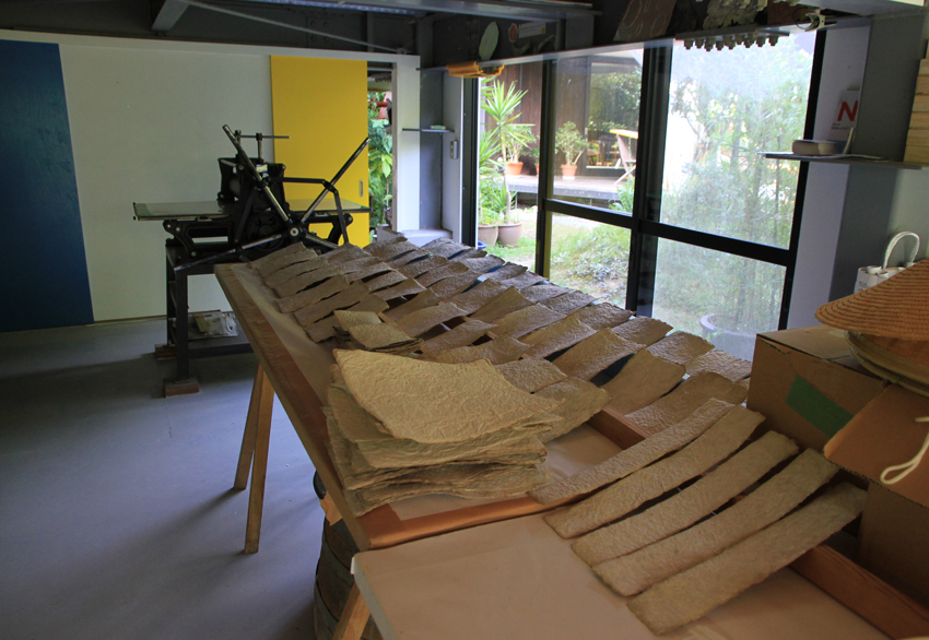 作し、自分たちの版画を刷る用紙や、工房独自の再生紙もつくります。